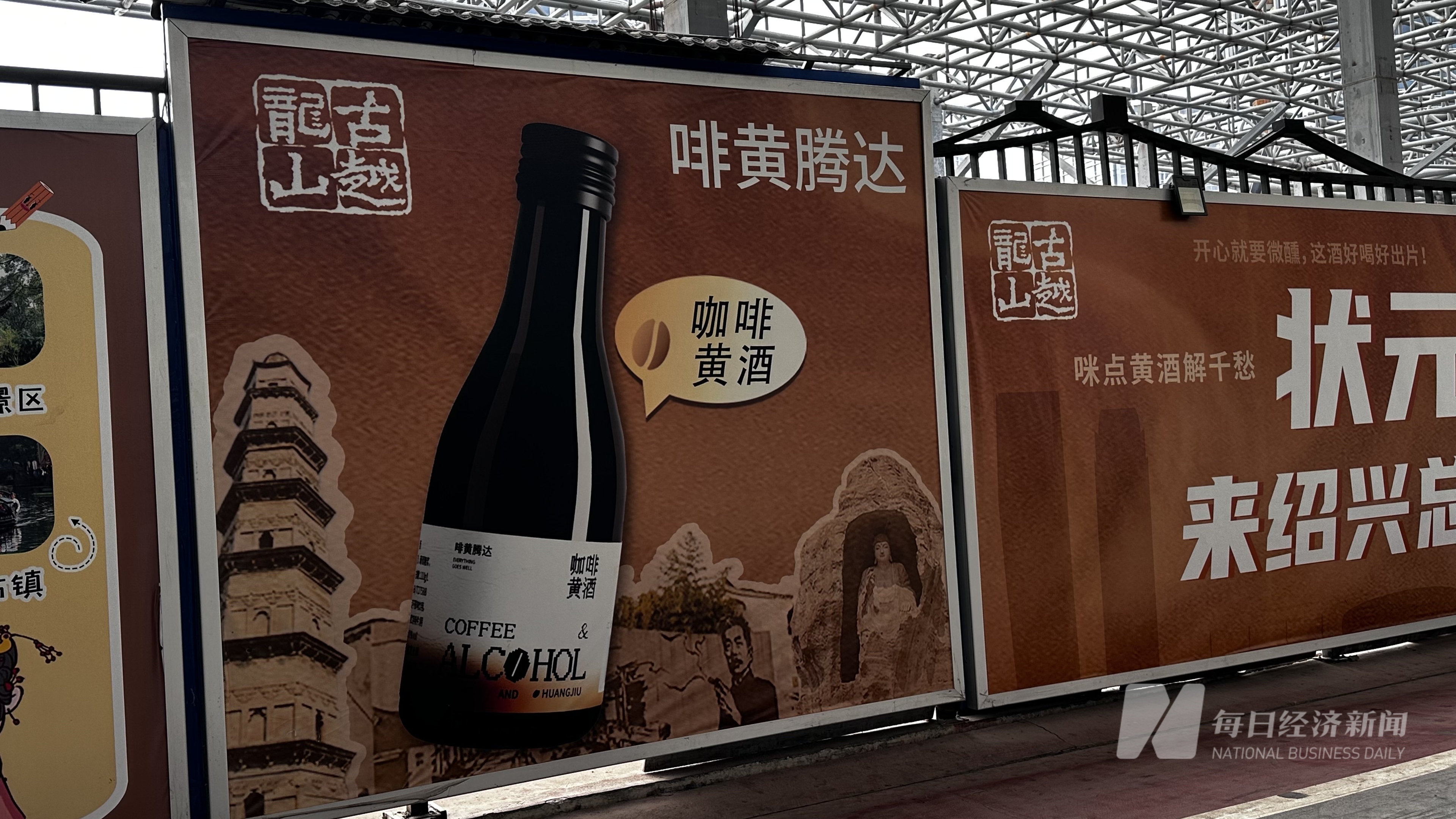2024年12月底,绍兴北站出站口的咖啡黄酒广告 图片来源:每经记者 黄海 摄